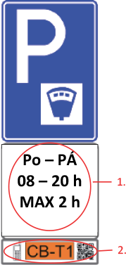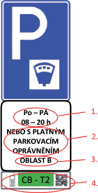 - Označení rezidentní oblasti, které je nutno zadat do virtuálních parkovacích hodin, mobilní aplikace SEJF, ParkSimply, DPMCB